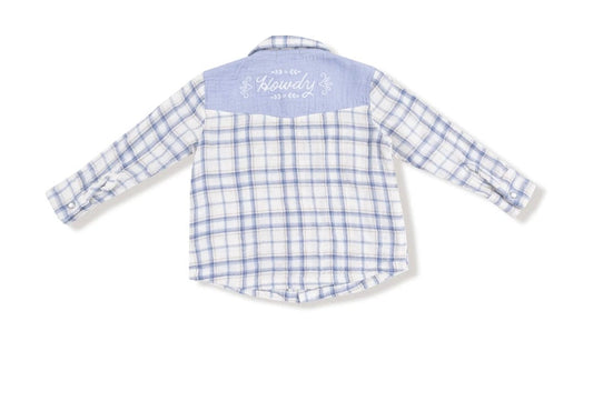 Blue Plaid Long Sleeve Western Pearl Snap Shirt