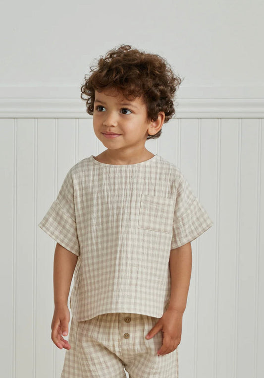 Quincy Mae-SS23-woven boxy top | silver gingham