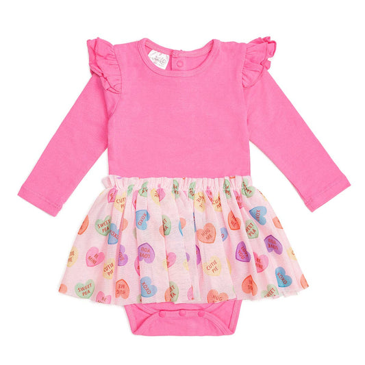 Candy Hearts Valentine's Day Long Sleeve Tutu Bodysuit Baby